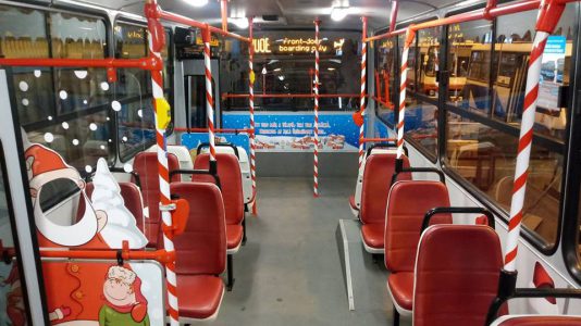 A Mikuláshoz és karácsonyhoz kapcsolódó motívumokkal díszített járművön december 6-tól 23-ig minden csütörtök-péntek-szombat és vasárnap lehet utazni.