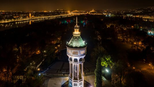 Budapest Így néz ki az éjjeli Budapest a Margit-szigeti víztoronyból 1911-ben emelték a Margit-sziget közepére az 57 méter magas tornyot a sziget növekvő és zavartalan vízellátásának biztosítására. Budapest 2020. november 9. Halász Gabi