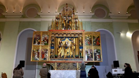 Budapest 75 év után teljes díszében látható a kisszebeni főoltár a Magyar Nemzeti Galériában A kisszebeni főoltárt 1944-ben, Budapest bombázásakor bontották szét és rejtették el, majd 1954-ben fogtak hozzá a helyreállításához. Budapest 2020. szeptember 23. Halász Gabi