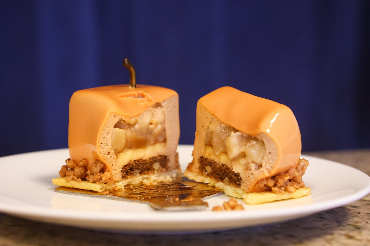 A Budapest aranyalmája elnevezésű sütemény egy linzer alapra helyezett mousse kocka. Ezt kívülről részben giandujás tejcsokoládéba forgatott mogyoró borítja. Belsejében almás betét rejtőzik, citrom curddel és narancsos-kávés krémmel, mindezt pedig giandujás tejcsokoládé mousse veszi körül.