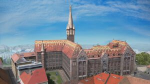 A középkori várfalakra emelt neogótikus stílusú építmény Schulek Frigyes tervei alapján készült.