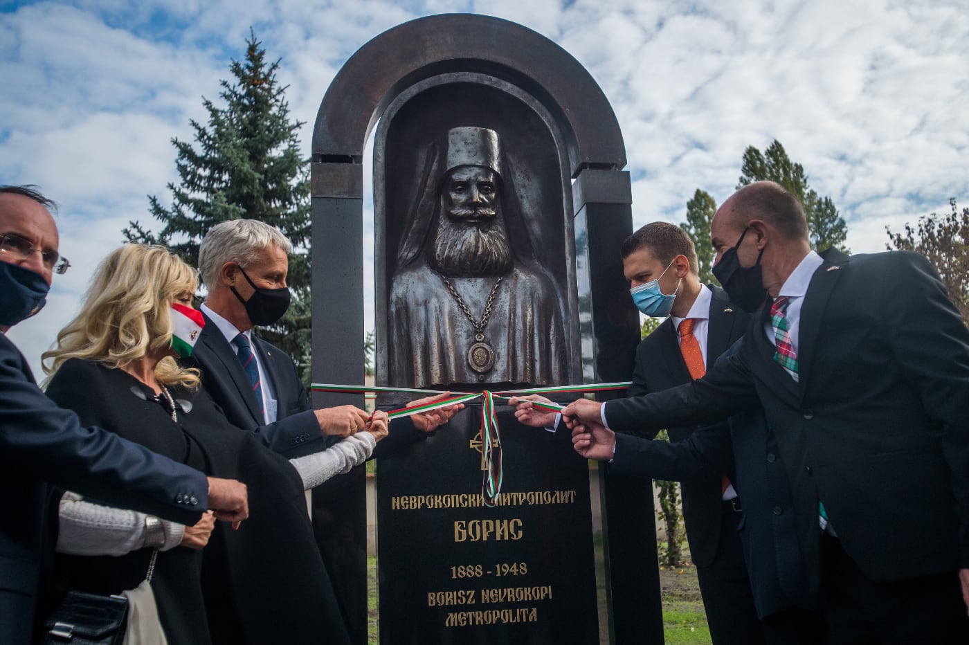 Felavatják a kommunizmus idején vértanúhalált halt Borisz nevrokopi metropolita szobrát a felújított Szent Cirill és Szent Metód bolgár ortodox templom és templomkert átadásán. Fotó © Balogh Zoltán | MTI