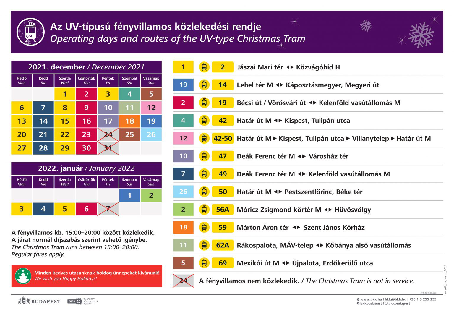 A Ganz UV típusú villamos 2007 óta már nem közlekedő nosztalgiajármű, amely az ünnepek keretében pár hétig – az advent kezdetétől egészen az új év hatodik napjáig szállít utasokat.