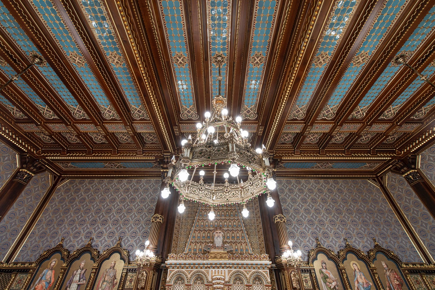 A legendás történelmi helyiség remekműveinek motívumaiból több száz apró részletet felhasználva egyedi, vetített mintázat díszíti a Budavári Palota keleti homlokzatát. Szent István mellett kirajzolódik IV. Béla király és Árpád-házi Szent Erzsébet alakja is, mindhármukról látható alkotás a teremben.