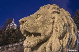Budapest Közel 6 méteres, Lego-kockákból épített oroszlán őrzi a Lánchidat A 5,80 méter hosszú, 1,70 méter széles és 2,45 méter magas Lego-szobor súlya 2,8 tonna, amely a Clark Ádám téren látható.