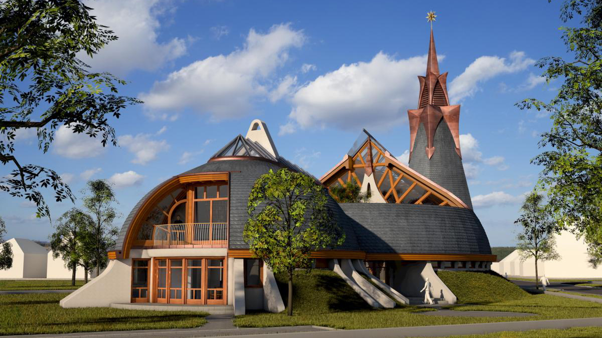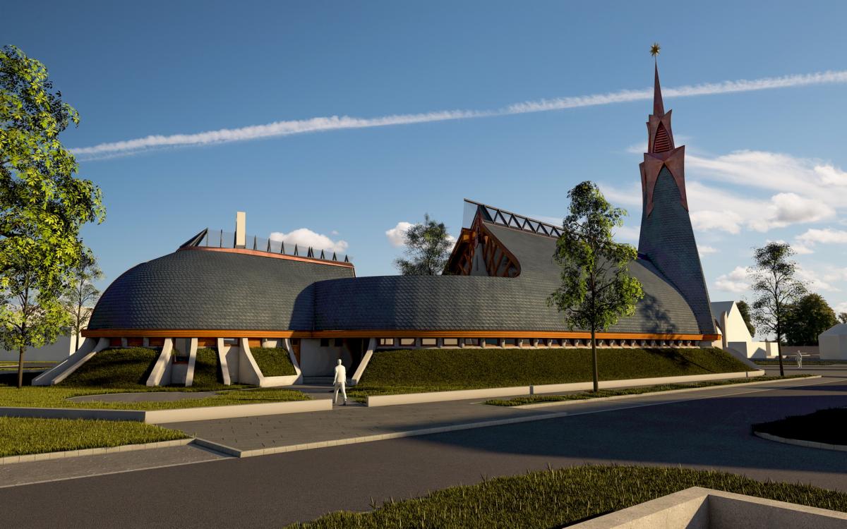 „A terv 2011-ben már megszületett, de a Mester halála mindent blokkolt, legalábbis lelassított. A tervezést Makovecz Imre megbízásából tanítványa, Dósa Papp Tamás folytatta. Ő felidézte: a mester mindig azt az egy épületet szerette volna megépíteni, amely az emberiség előtt már állt a világban. A templomnak az az alapgondolata, hogy olyannak kell lennie, mintha az alja a földből nőne ki, a teteje pedig az égből ereszkedne alá. Makovecz megfogalmazásában: