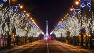 A mintegy 17 méter magas és 4 tonnás ezüstfenyőt Székesfehérvárról a Magyar Honvédség segítségével szállították a Kossuth Lajos térre.