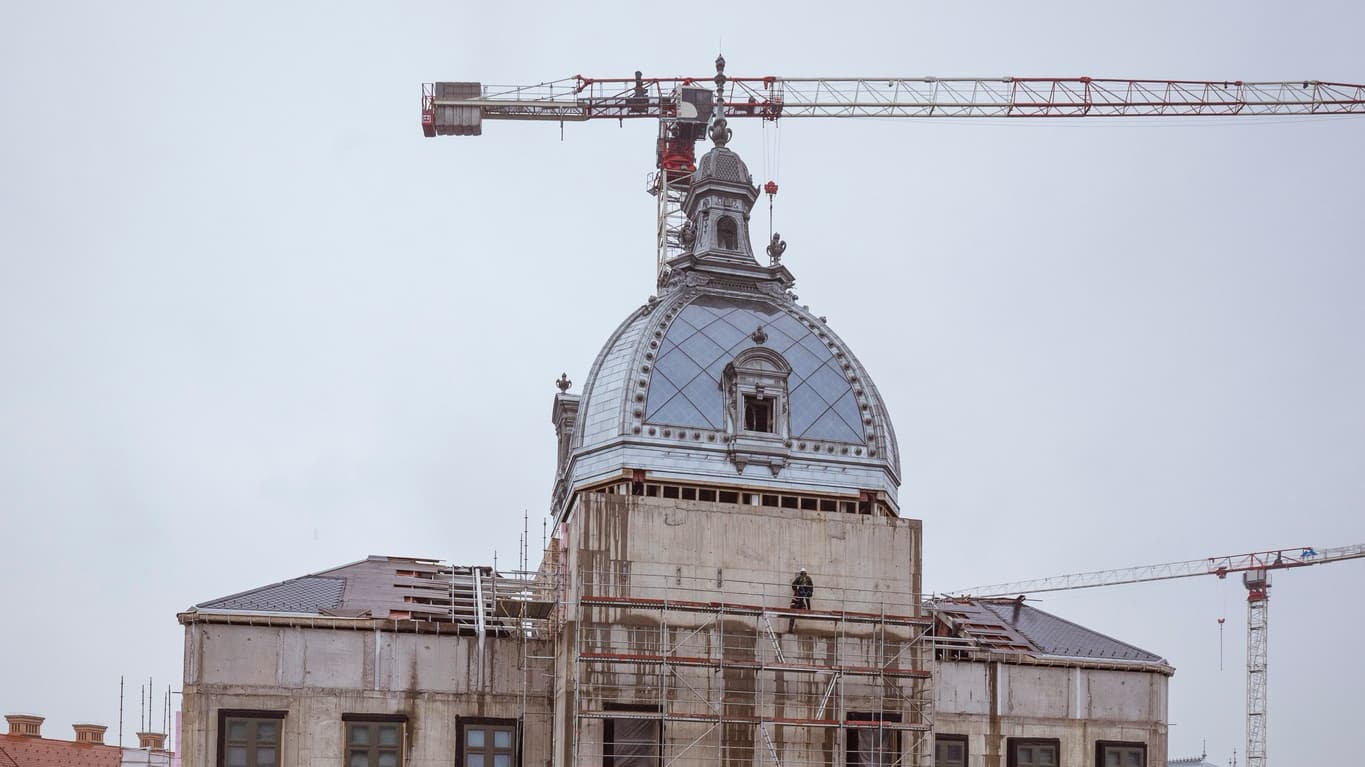 Az épület rekonstrukciójának egyik legjelentősebb és leglátványosabb elemeként a kupola végső formája immár megcsodálható, miután az építési állványokat eltávolították.